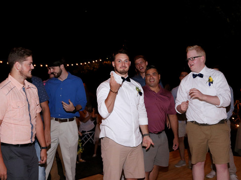The reception was held adjacent to the house, and I gotta tell you guys, one of my favorite things about their reception was their dance floor. It was homemade out of wood, designed to look like a full basketball court, and the ends had their respective logos for one another (one for her college basketball and one for the Air Force)! They even had a custom built score-box that was hung up top in the middle of it with string lights! I've done many fancy weddings, but personalized decor details like that takes the cake.